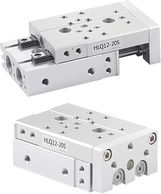 Pneumatic Cylinder Pneumatic Guide Rail Precision Slide Cylinder HLQ12/16/20-10X20X30X40X50X75X100S Accessories 1Pcs(Stroke 20,Bore 20mm(HLQ 20))