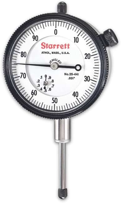 Starrett 25 Series Dial Indicator with SLC, Jewel Bearings and Lug-On-Center Back - White Face, 0-1" Range, 0-100 Dial Reading, .100" Graduations - 25-441J W/SLC