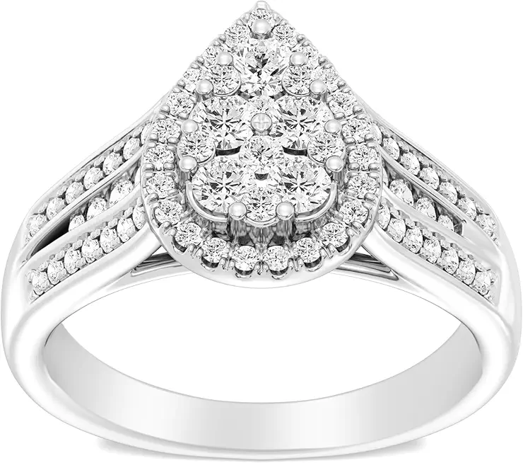 GILDED Diamond Engagement Ring for Women | 925 Sterling Silver Wedding Ring or 14K Gold Plated Engagement Ring in 1 ctw, 1/2 ctw, 3/4 ctw Lab Grown Diamonds Wedding Rings for women in Pear, Round, Square, Oval Shapes in Size 7