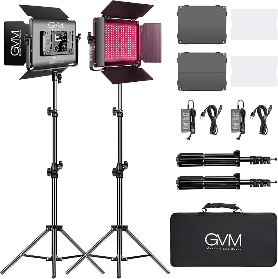 GVM RGB LED Video Light with Bluetooth Control, 60W Photography Studio Lighting Kit with Stands, 2-Packs 880RS Dimmable Led Panel Light for YouTube, Streaming, Gaming, 8 Applicable Scenes, CRI97