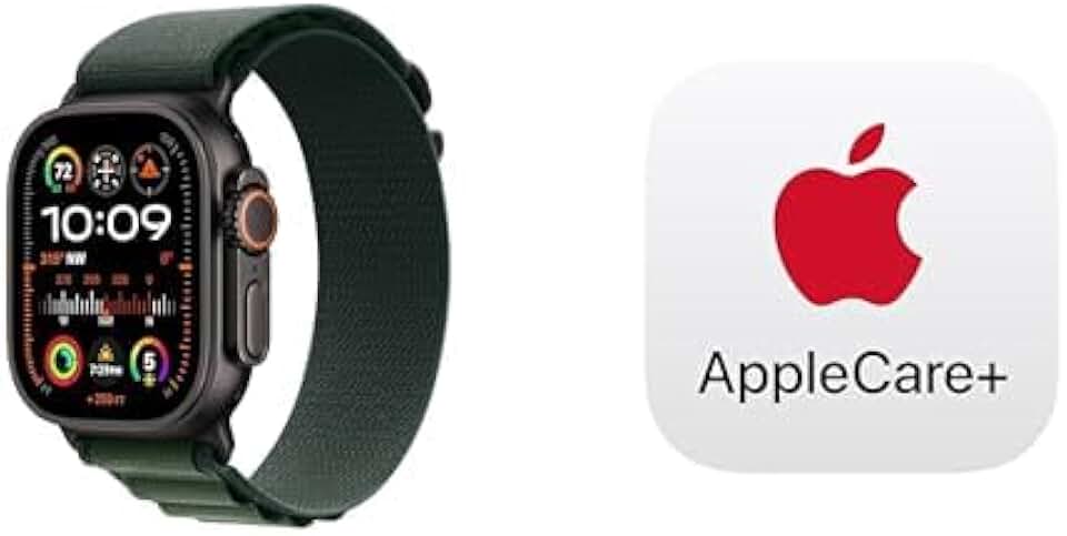 Watch Ultra 2 [GPS + Cellular 49mm] Smartwatch, Sport Watch with Black Titanium Case with Dark Green Alpine Loop - M. Fitness Tracker, Precision GPS, Carbon Neutral with AppleCare+ (2 Years)