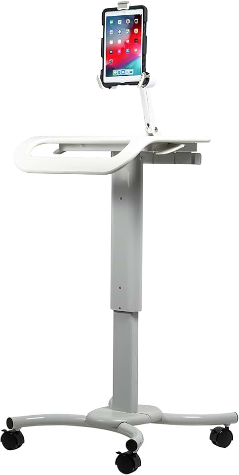 Rolling Medical Workstation – CTA Height Adjustable Mobile Secure Medical Workstation Cart for iPad 10th Gen 10.9" - iPad 7/8/9 Gen 10.2”- iPad Pro 11” - iPad Air 4 - Galaxy Tab S3 - White (QPAD-HRSW)