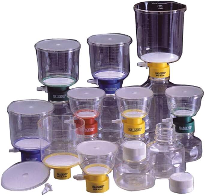 Nalgene MF75 Series Polystyrene Serum Filter Unit, Sterile, Yellow Collar, 0.45 Micron, 90mm Membrane Diameter, 500mL Capacity (Case of 12)