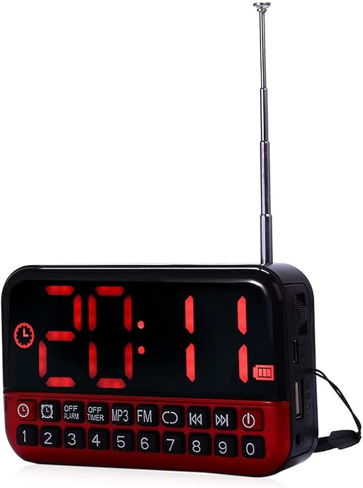Digital Alarm Clock Display Radio Music Speaker Travel Snooze Function Antenna Office Home(E)
