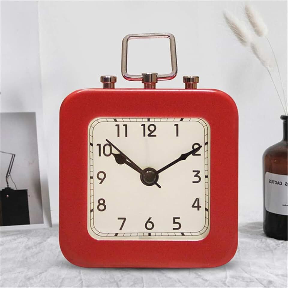 Multi-Functional Digital Alarm Clock Nordic Simple Metal Square Silent Alarm Clock with Handle Bedside Table Clock(E)