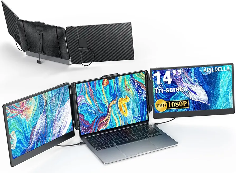 14’’ Triple Laptop Screen Extender, 1080P FHD Portable Dual Monitor for Laptop USB C HDMI, Plug-play Monitor Extender for Mac/Windows, Fit 13”-17.3” Laptops