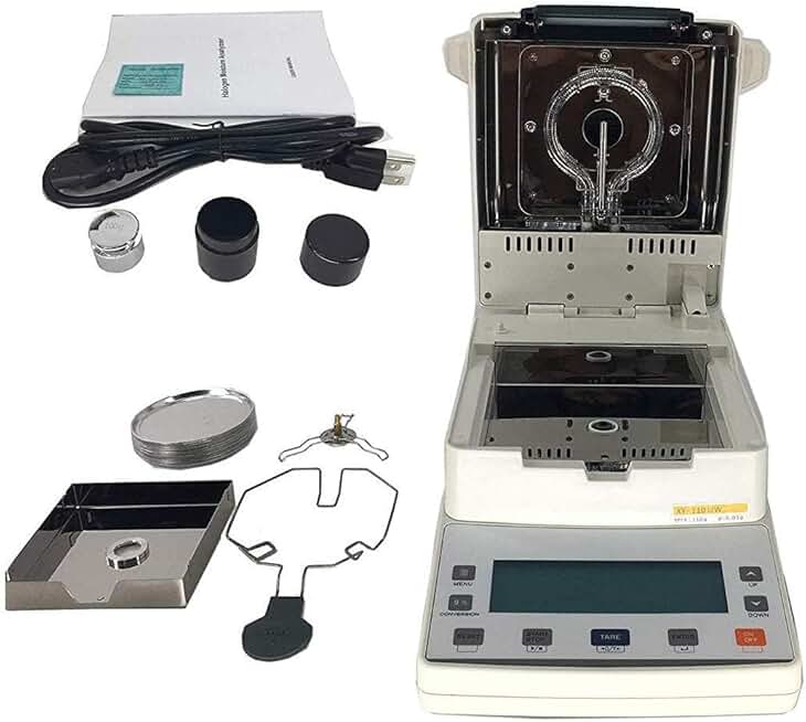 Halogen Moisture Analyser Fast Lab Moisture Tester Halogen Moisture Measurement with Moisture Range 0 to 100.00% Capacity 110g Readability 0.01g External Calibration RS232 Interface