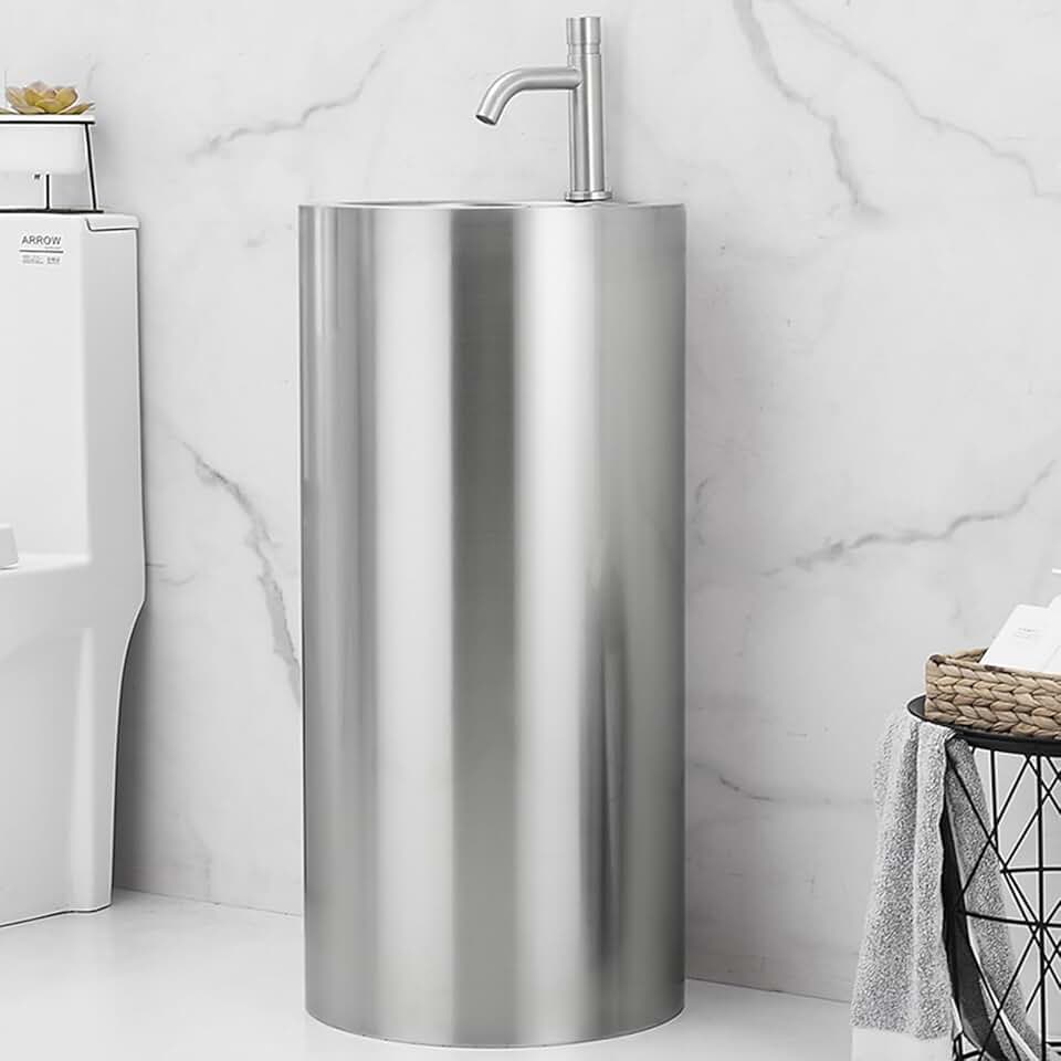 One Piece Freestanding Pedestal Sink, Stainless Steel Pedestal Sink, Household Bathroom Vessel Sink With Faucet And Drain Combo, Sturdy and Stable