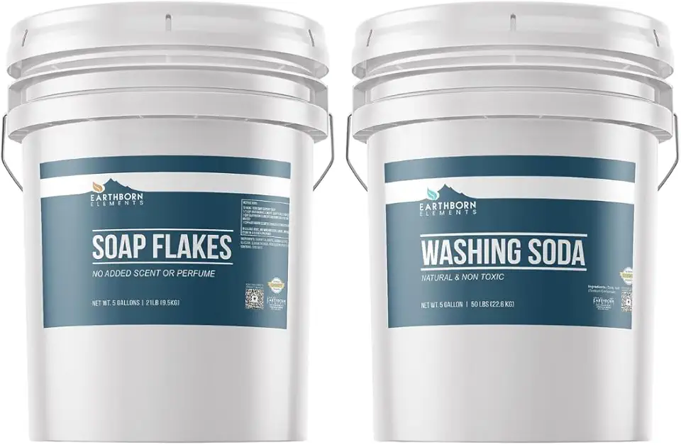 Earthborn Elements Washing Soda and Soap Flakes Bundle, 5 Gallons Each, Laundry Detergent, DIY, Cleaning