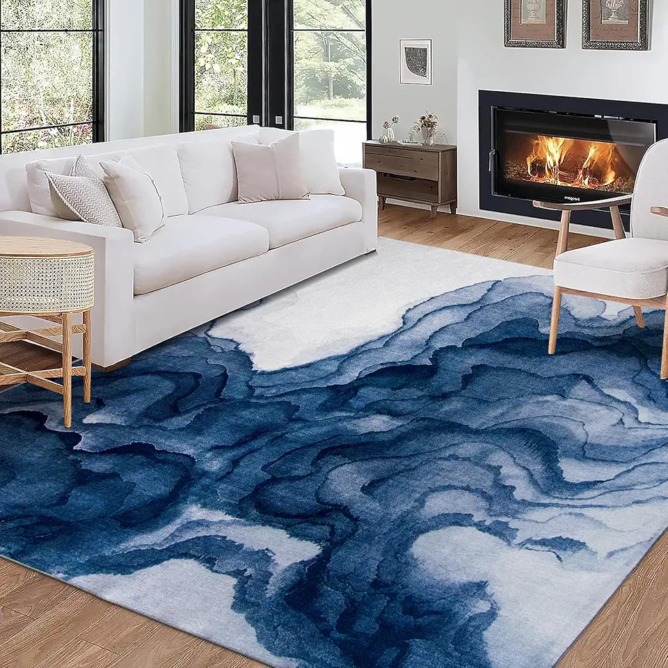 ReaLife Machine Washable Area Rug - Living Room Bedroom Bathroom Kitchen Entryway Office - Padded Low Pile Stain Resistant Premium - Modern Abstract Contemporary - Ian - Blue 7'6" x 9'6"
