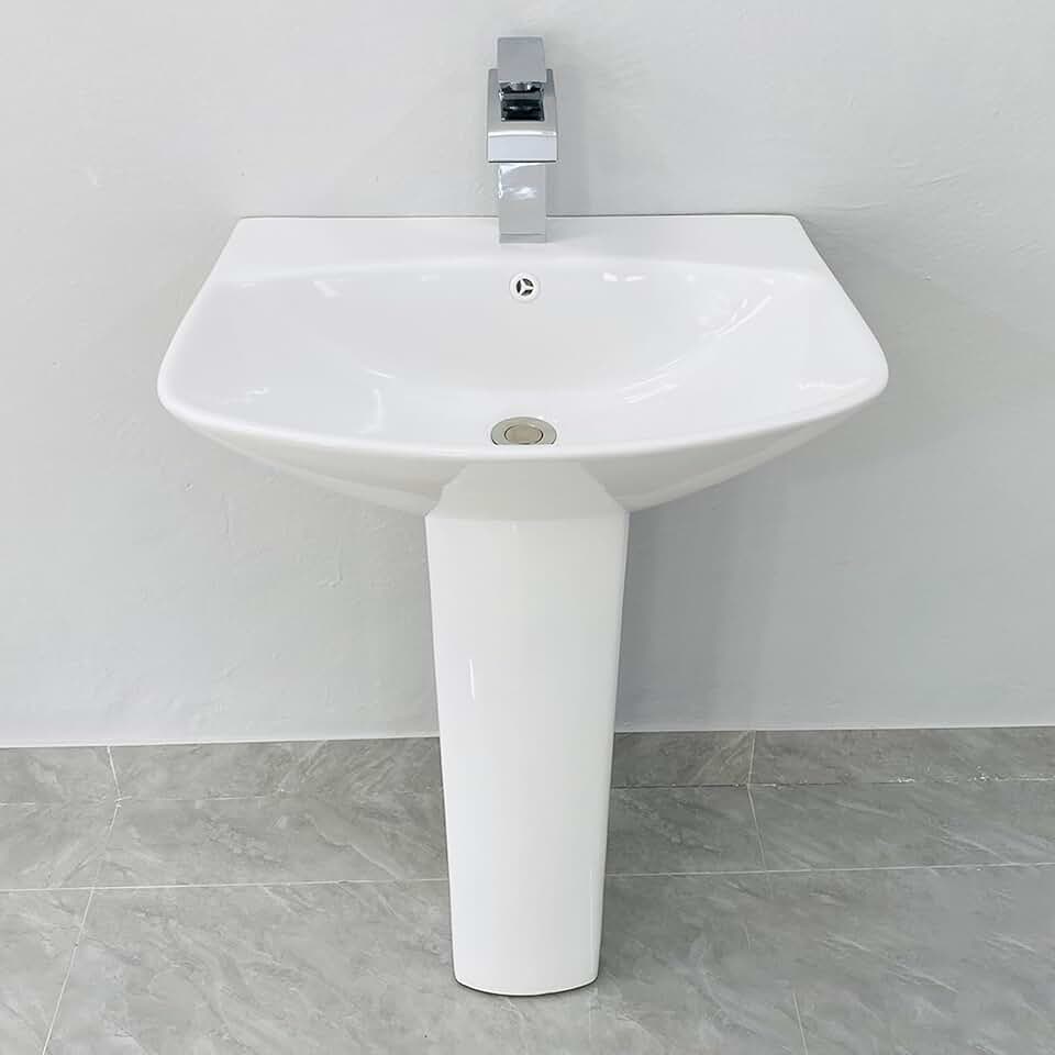 Pedestal Sink, Ceramic Pedestal Sink For Bathroom, Glossy White Pedestal Sink, with Hot and Cold, Floor-standing Countertop Basin For Cloakroom Balcony