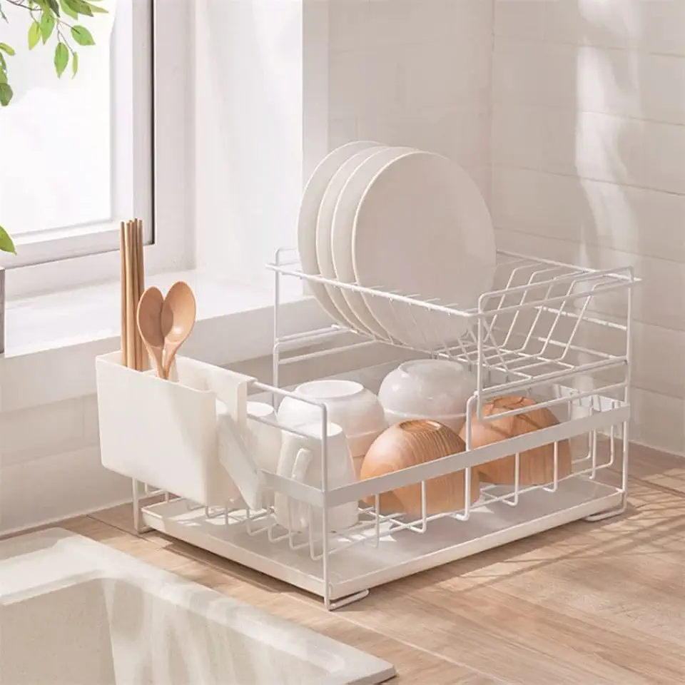 Dish Drying Rack with Drainboard Drainer Kitchen Light Duty Countertop Utensil Organizer Storage for Home (Color : OneColor)