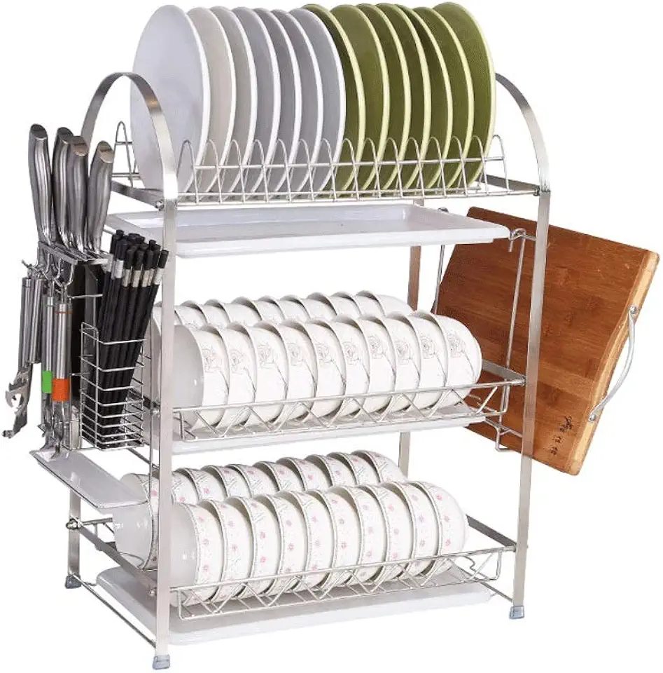 304 Stainless Steel Dish Rack Drain Rack Drying Filter Tableware Storage Box Dishes Dishes Supplies Kitchen Racks 3 Layers