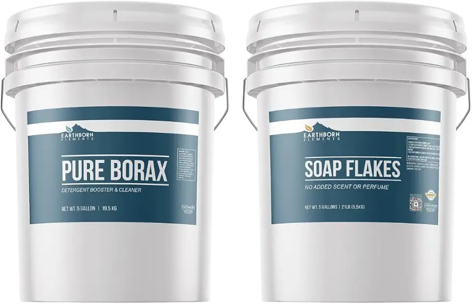 Earthborn Elements Borax Powder and Soap Flakes Bundle, 5 Gallon Buckets, Laundry Detergent, Unscented, DIY