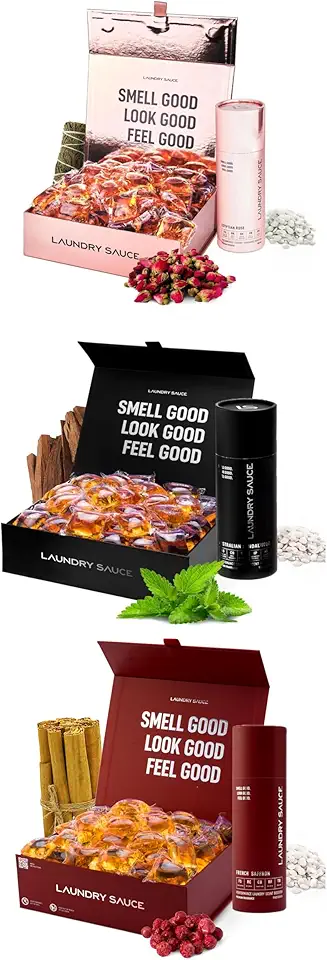 Laundry Sauce - 03 Sets of Luxury Scented Laundry Detergent Pods & Scent Booster Bundle (Australian Sandalwood, Egyptian Rose & French Saffron) Premium Laundry Washing Pods, Sophisticated Fragrance