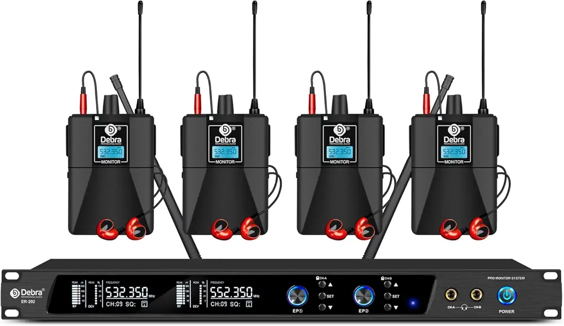 Audio PRO ER-202 UHF Dual Channel Wireless in Ear Monitor System with Monitoring Type for Stage, Receiver for Studio, Guitar, Band Performance (Dual Channel, 4 Bodypack)