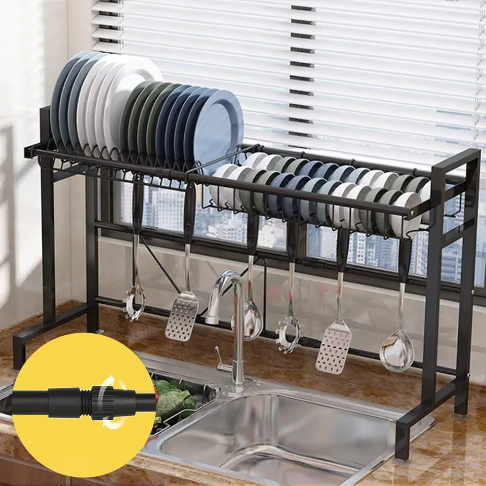 Adjustable Over The Sink Dish Rack,Expandable Dish Drain Rack Stainless Steel Dish Drying Rack with Hooks and Removable Cutlery Holder A 58-93cm(23-37inch)