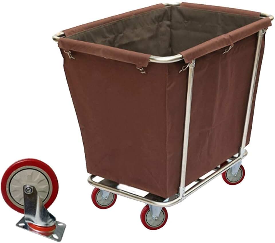 INDYAH Movable Trolleys, Kitchen Storage Hand Trucks, Heavy-Duty Laundry Sorter Cart,Hotel Linen Trolley with Durable Detachable Fabric Bags/Brown/5Inch Wheel