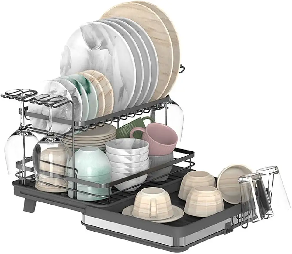 Double Layered Bowl and Dish Rack, Cup and Dish Rack, Household Kitchen organizing Tools, Edge Bowl and Dish Rack, 36.6*30*25CM