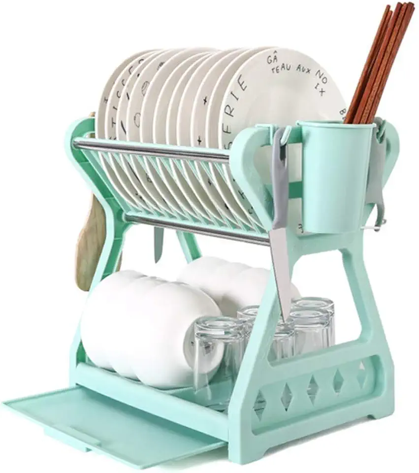 GYLXW Dish Rack, 2 Tier Dish Drying Rack with Drain Board, Utensil Holder, Cutting Board Holder, Dish Drainer for Kitchen Countertop(Black)