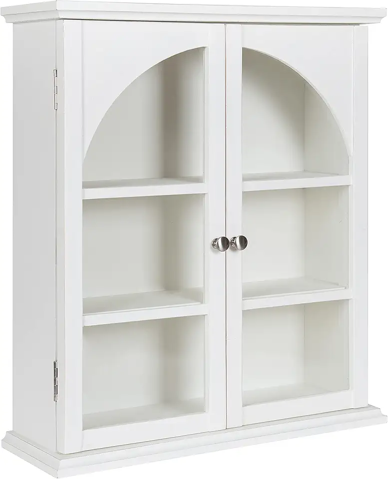 Kate and Laurel Walsted Decorative Farmhouse Arched Wall Cabinet with Glass Door, 24x8x28, White