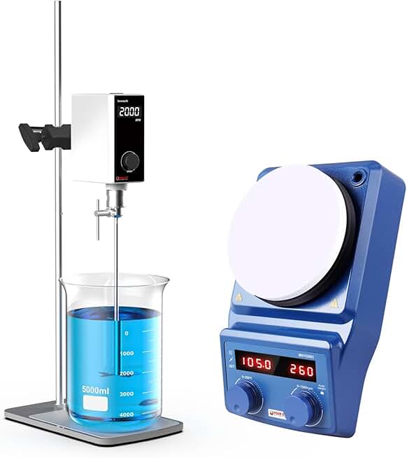 FOUR E'S SCIENTIFIC 5 Inch Magnetic Stirrer Hot Plate with Electric Overhead Stirrer 20L