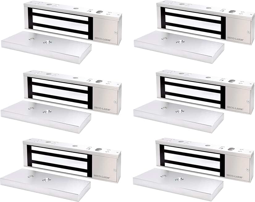 Seco-Larm E-941SA-1200 Pack of 6 Electromagnetic Locks; 1200-lb Holding Force, Anodized Aluminum Housing (US 28), Selectable 12/24 VDC Operation, Adjustable Mounting Bracket, Detachable Faceplate