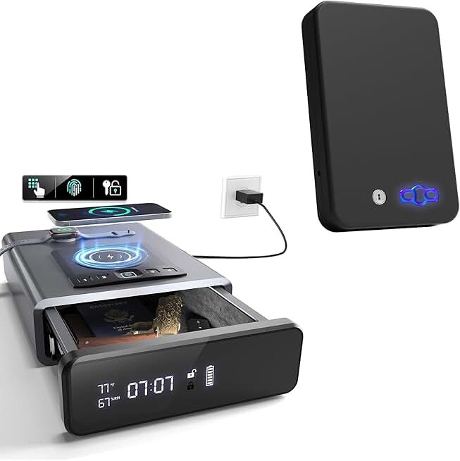 Biometric Gun Safe with LED Clock + Portable Pistol Safe
