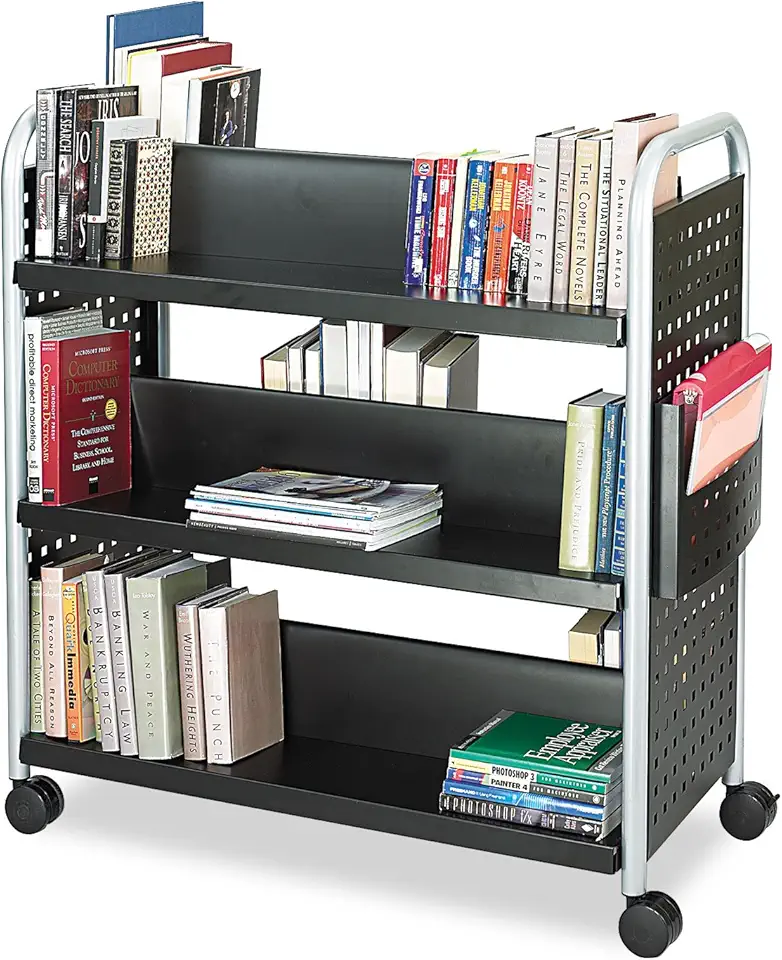 Scoot Double-Sided Book Cart – 6 Slanted Shelves, Swivel Wheels, Steel Construction, 300 lb. Weight Limit -Perfect for Home, Office,Classrooms or Libraries Black, 5335BL