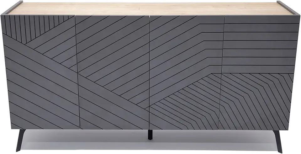 Raveena DAN Sideboard | Buffet Cabinet with Storage | 4-Door Sideboard Cabinet | Multifunctional Buffets & Sideboards | Credenza with Soft Closing Hinges | Media Console with Storage (Dark Gray)
