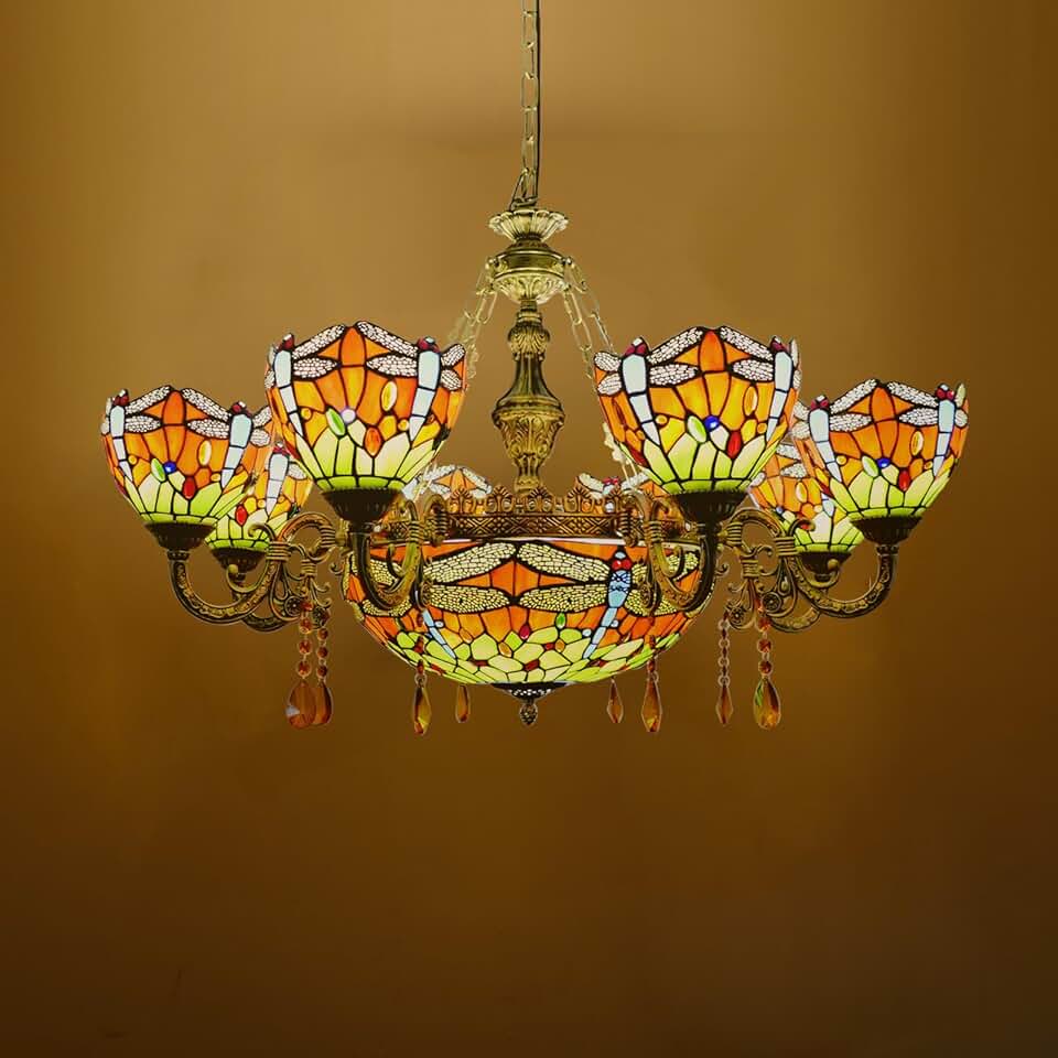 Stained Glass Tiffany Chandelier 11 Lights Pendant Light Chain Adjustable Victorian Hang Lighting Fixtures for Living Dining Room Hotel,35 Inch