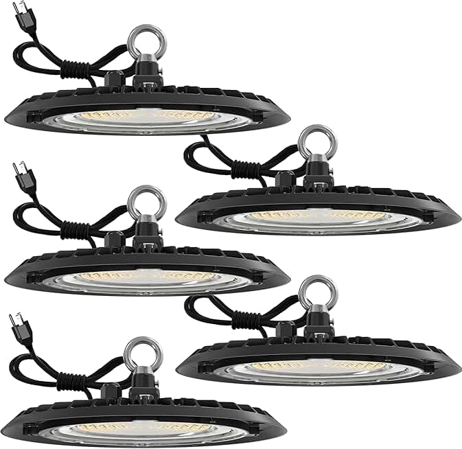 Sunco 5 Pack UFO LED High Bay Light, Plug & Play Lighting for Warehouse, 6000K Daylight Deluxe, 150W, Power Cord Included, 19500 LM, 120VAC, IP65, Waterproof Shatterproof Fixture - UL Listed