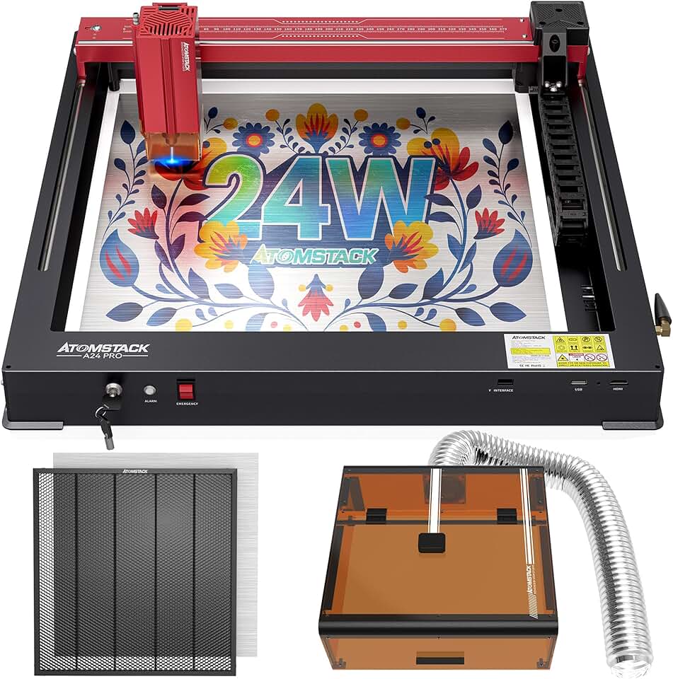 A24 PRO 24W (Basic), with Laser Engraver & B3 Enclosure & F4 Honeycomb Laser Bed, 600mm/s,24W Output Power Laser Cutter, for Wood Metal Acrylic Craft