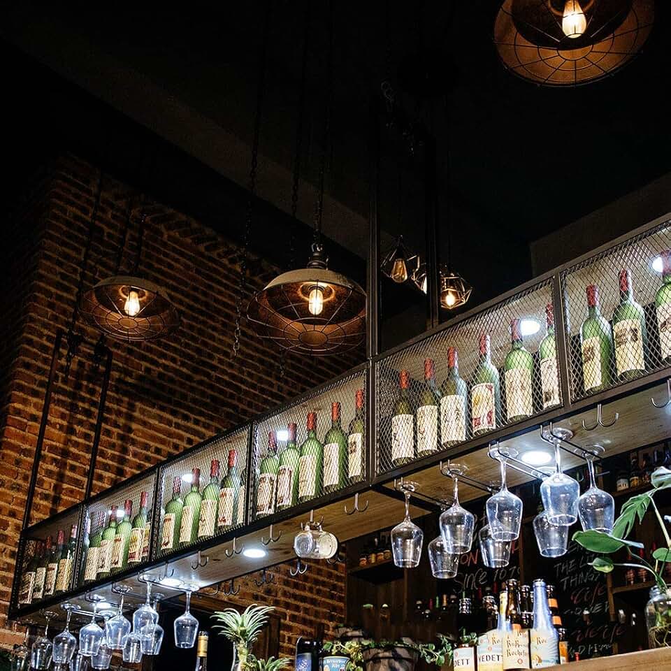 Wine Rack, Display Stand, Wine Cabinet, Double Layer Wine Glass Cup Rack European Style Iron Ceiling Mounted Wine Bottle Holder Bar Butler Wine Dispenser Holds Any Type of Stemware Glassware Wi