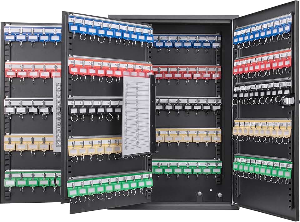 Barska Adjustable Key Cabinet Lock Box with Colorful Key Tag Labels - 300 Position - Combination Lock - Black