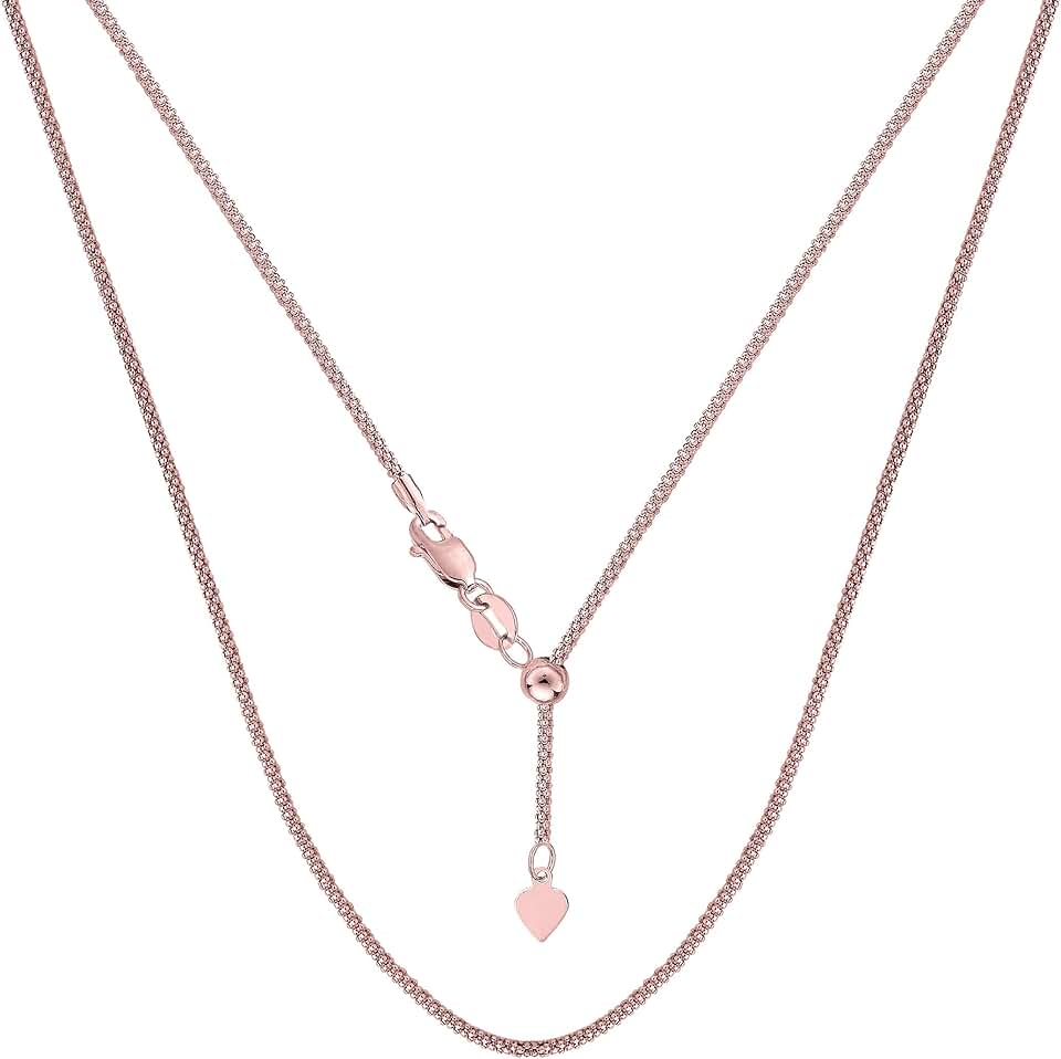Jewelry Affairs 14k Rose Solid Real Gold Adjustable Popcorn Link Chain Necklace, 1.3mm, 22"