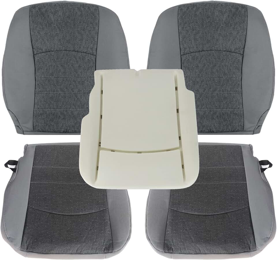 NLQR Front Driver and Passenger Side Bottom & Back Replacement Seat Covers Cloth Dark Gray & Driver Bottom Foam Cushion Compatible with Dodge Ram Pickup 1500 2500 3500 4500 5500 2013-018
