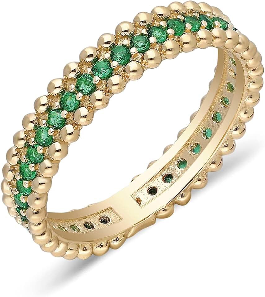 14k Solid Gold Emerald Ring | 14k Real Gold Eternity Band Ring | Micro Pave Green Emerald Ring | Unique Wedding Band | 14k Emerald Gemstone Jewelry for Women
