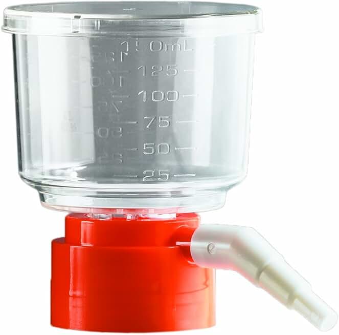 Corning 430627 Polystyrene Bottle Top Vacuum Sterile Filter, Graduated, Cellulose Acetate Membrane, 0.45 Micron, 45mm Bottle Neck Diameter, 150mL Capacity (Case of 48)