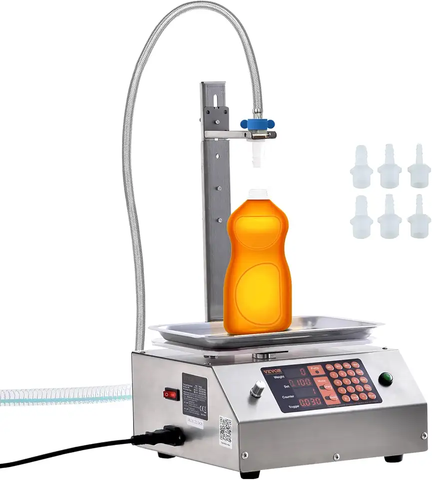 VEVOR Liquid Filling 30-15000 g Weighing Capacity, Automatic Filler Bottling Machine Digital Control for Milk, Water, Oil, Wine, Beverage, Detergent, Shampoo (Single Nozzle), 30-15000g, Silver