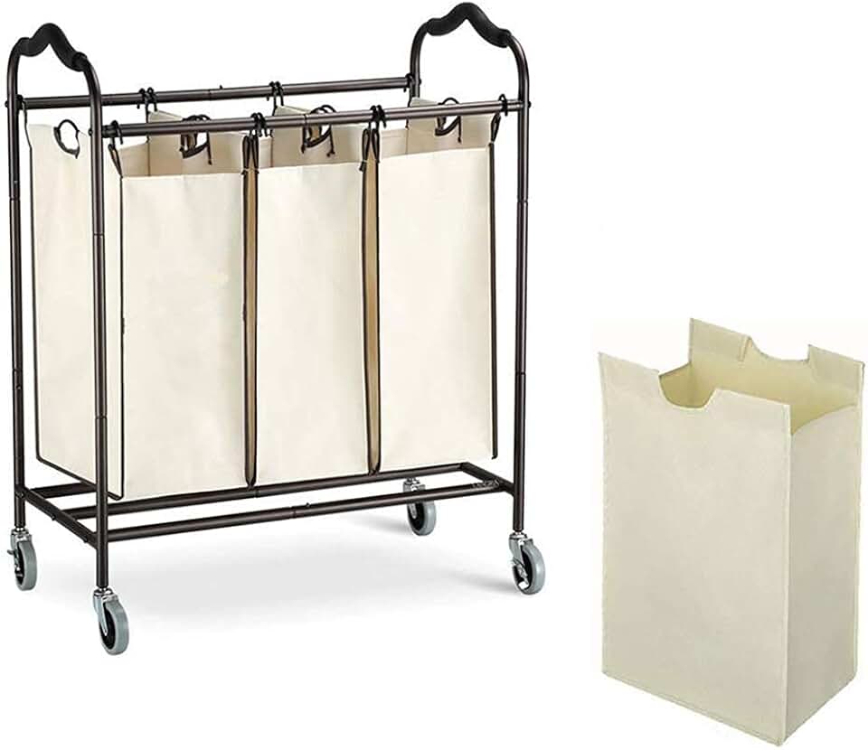 INDYAH Movable Trolleys, Kitchen Storage Hand Trucks, 3-Bag Laundry Sorter Cart,Heavy-Duty Laundry Sorter Cart with Movable Fabric Bags