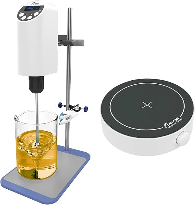 LABFISH Electric Overhead Stirrer Lab Digital Mixer peed 100-2000RPM,Powerful Heavy Duty 20L,30000 mPas | Magnetic Stirrer 200-1800PRM Magnetic Mixer Max Stirring 3000ml