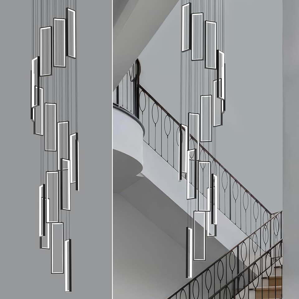 Modern Adjustable Height Pendant Light Fixture Black 288W LED Pendant Lights 16 Rings Rectangular Chandelier Staircase Large Chandelier Lobby Living Room Foyer High Ceiling Chandeliers