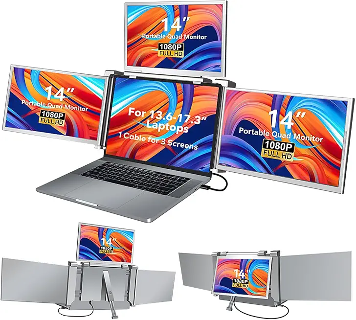 MNN 14 Inch Laptop Screen Extender,FHD 1080P IPS Portable Quad Monitor for 13.6-17.3" Laptops Foldable Monitor,One Cable for Three Displays, Extender Compatible with Wins/Mac(M1 M2 M3)