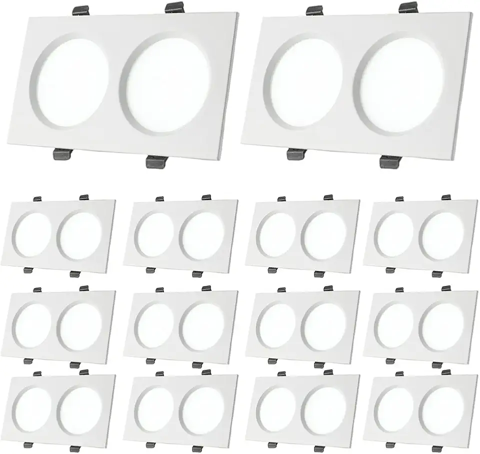 14pack Square Double Head Downlights Recessed Panel Light 10W,18W,24W,36W Led Recessed Wafer Light COB Bull's Eye Spotlight Retrofit Can Light 3000K Warm White