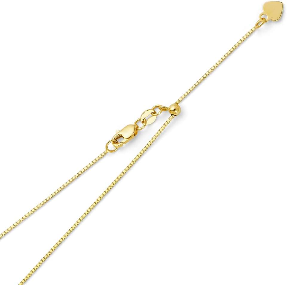 14k REAL Yellow OR White Gold Solid 0.8mm Box Length Adjustable Chain Necklace with Lobster Claw Clasp