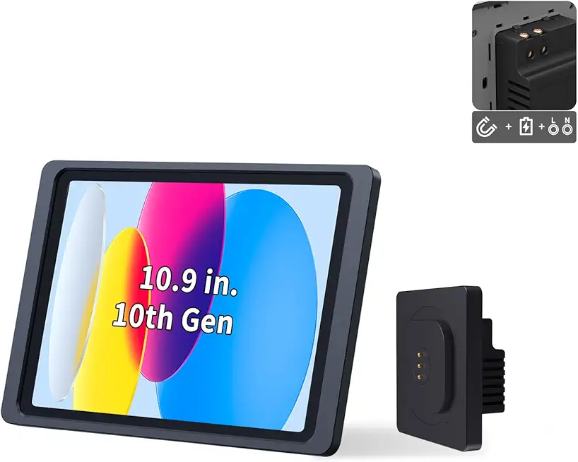 Magnetic Wall Mount with Charging Case for iPad 10.9” 10th Gen (2022). Upgraded 18W Quick Charge, Strong Magnets, 360 Rotation, in-Wall 86x86 Junction Box Included