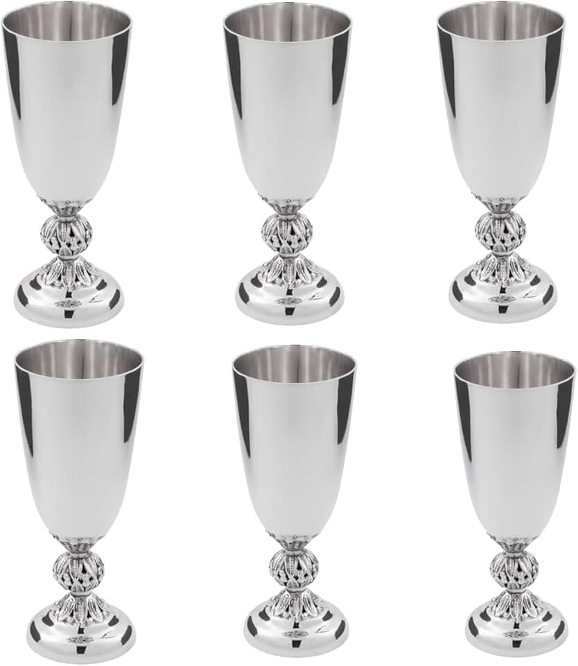 Sterling Silver Polished Glasses Gift Set - Vintage Stemmed Mini Goblets for Shot Drinks - Elegant Silver Glassware in a Charming Gift Box for 6