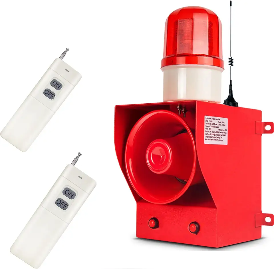 1.24mile Wireless Remote Control Alarm Siren with 2 Remote Control 130dB Volume 9 Tones Adjustable 45w Alarm Systerm Strobe Sirens AC110-120V