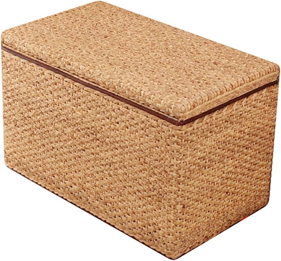 Laundry hampers Handmade Straw Storage Basket With Lid Makeup Storage Box Laundry Basket Rattan Jewelry Box